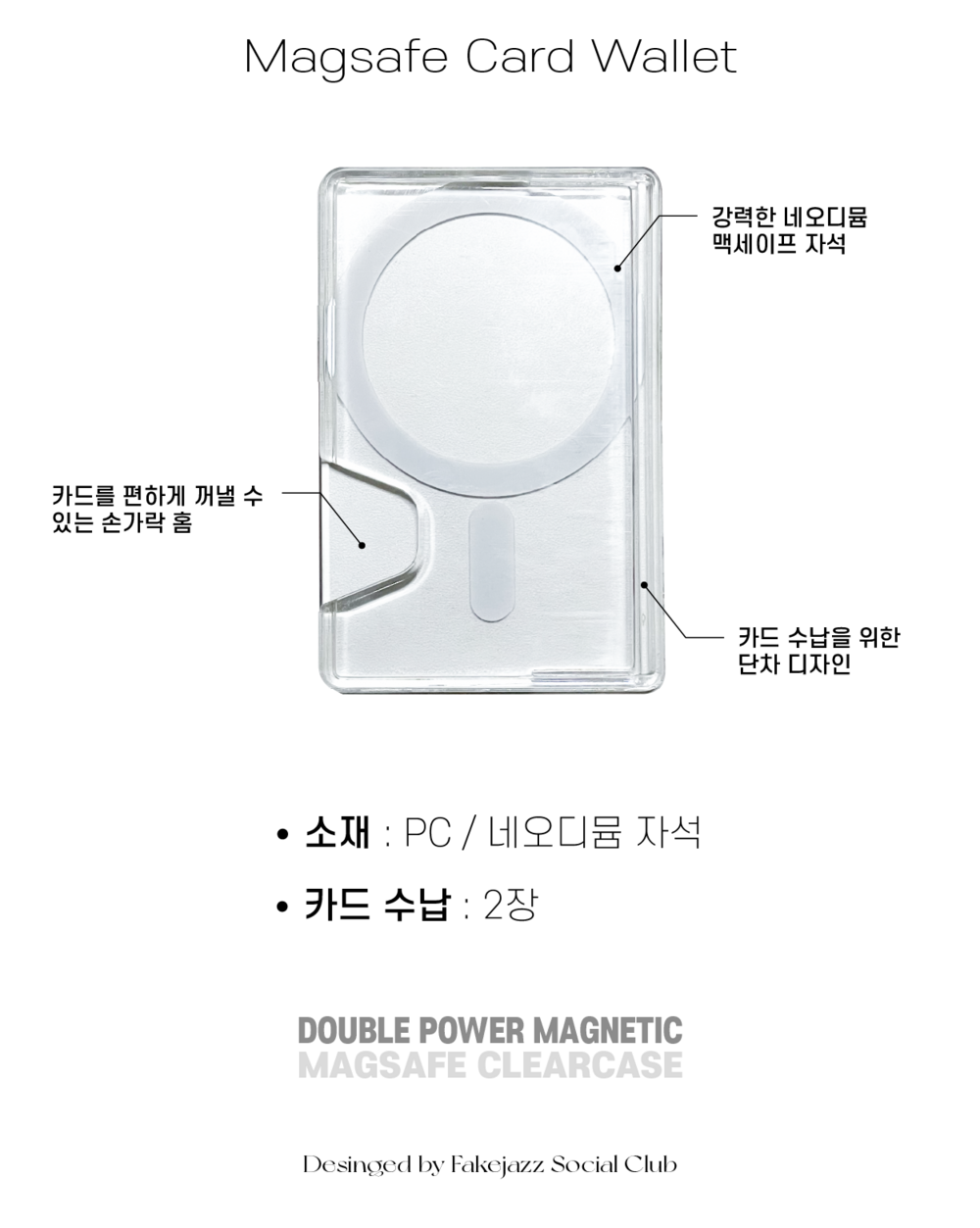 • 카드를 2장까지 수납할 수 있으며 카드를 꺼내지 않고 결제를 위한 태그가 가능합니다. (교통카드O)
