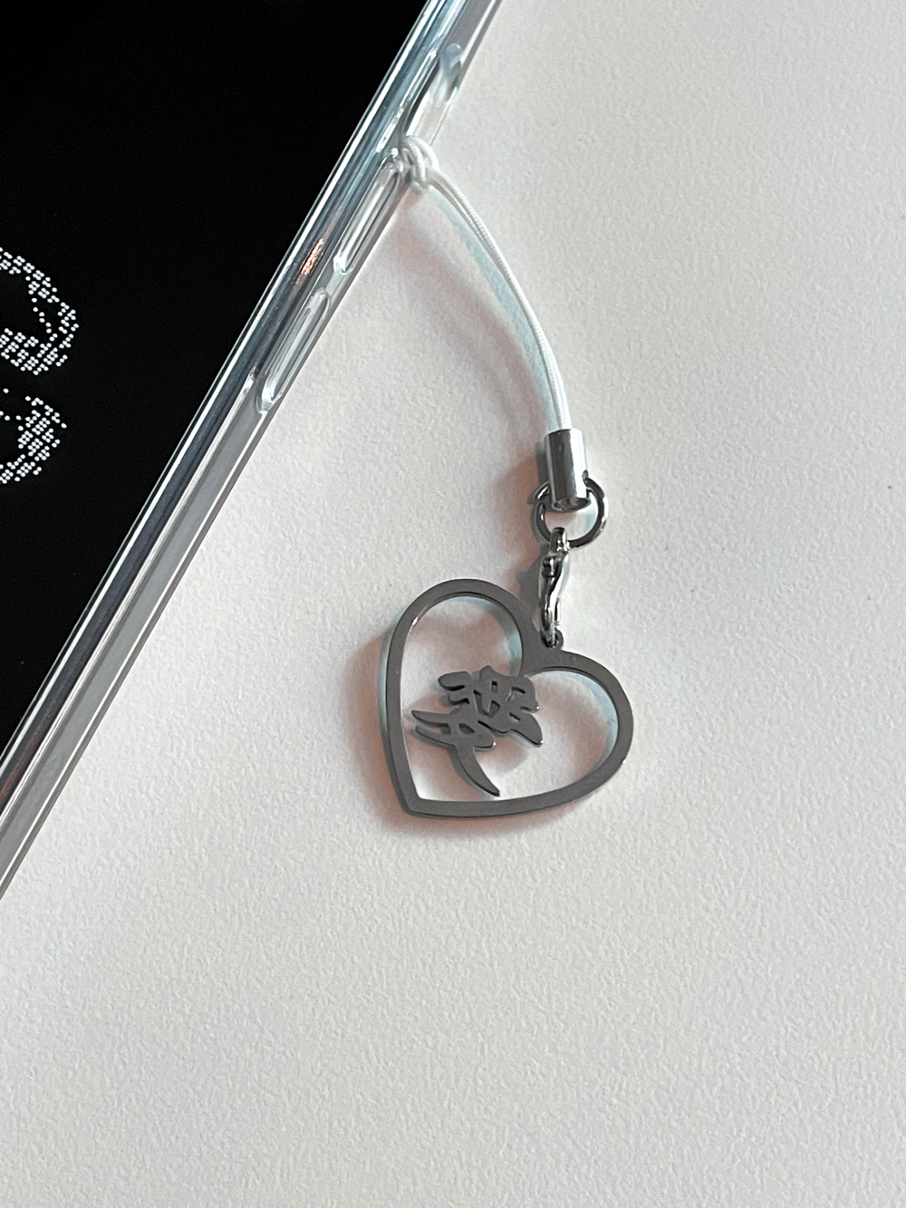 핸드폰 옆 작은 홀에 끼워서 함께 사용하기 좋은 심플하고 포인트가 되는 키링입니다 🤍